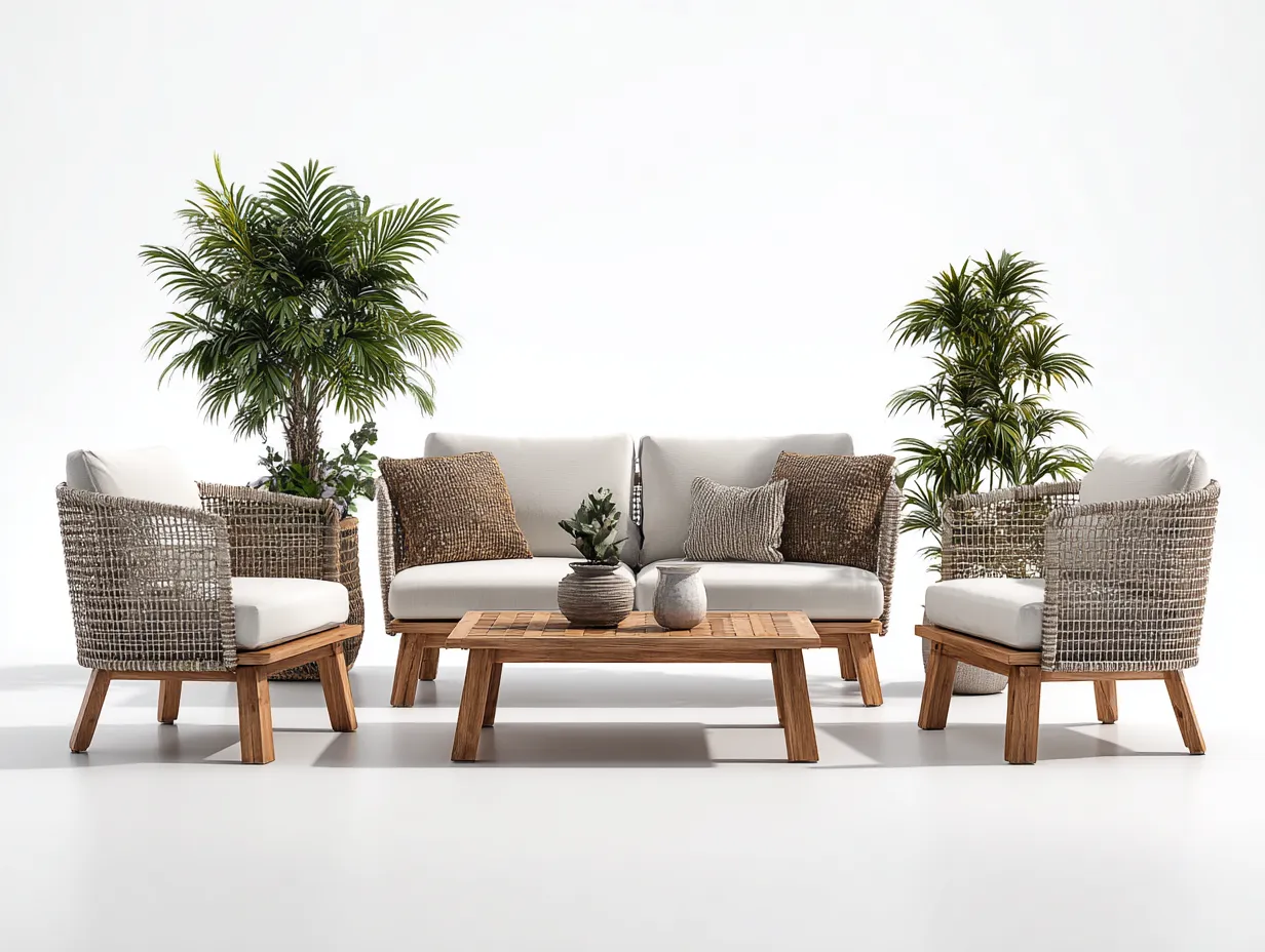 Canapé de jardin - bois-tressage synthétique - 232x172x75 cm - beige-naturel - style naturel extérieur