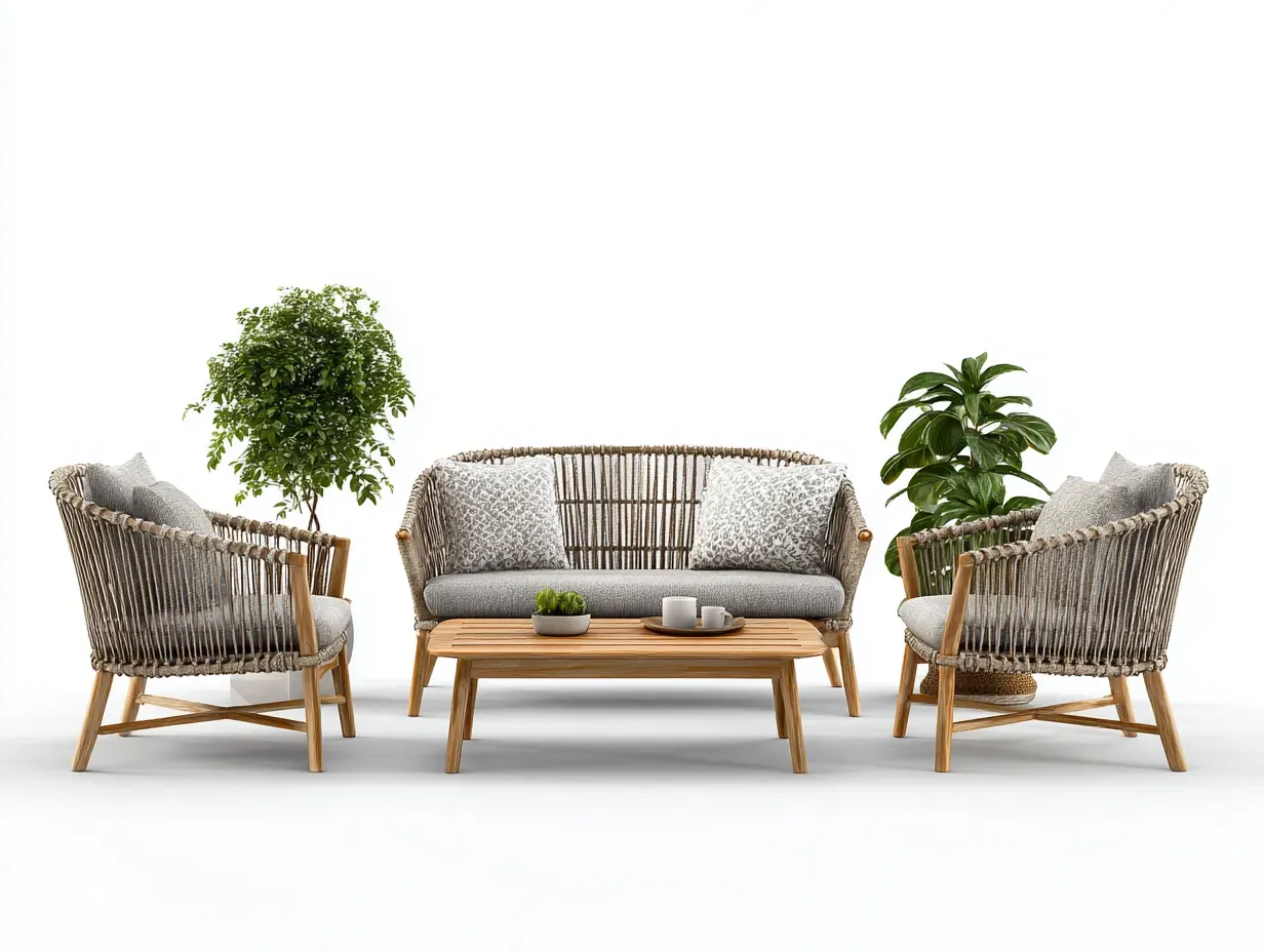 La conception favorise une disposition conviviale autour de la table basse. Chaque élément assure une assise stable et un confort adapté à un usage extérieur régulier.