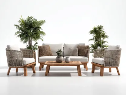 Ce canapé de jardin est conçu pour aménager un espace extérieur confortable et structuré. L'agencement des assises autour de la table centrale permet une utilisation fluide sur une terrasse, un patio ou dans un jardin, tout en conservant une esthétique naturelle et équilibrée.