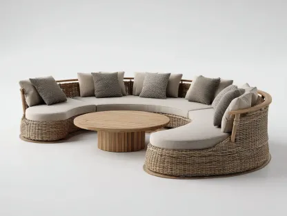 Ce canapé de jardin présente une forme arrondie pensée pour structurer un espace extérieur élégant et accueillant. Il s'intègre naturellement sur une terrasse ou dans un jardin et offre une assise continue adaptée aux moments de détente en plein air.